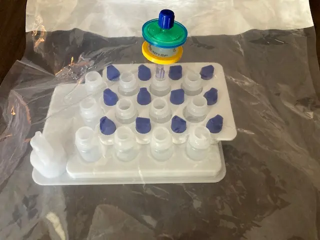 PALA YourTears 12 Core Kit features a closed-system header bag and integral 0.22-micron sterilizing-grade filter with a proprietary holding tray and twelve 5 mL eye drop bottles. The PALA YourTears 12 Core Kit provides up to 60 mL of serum tears. This kit enables clinicians to prepare serum tears without a clean room or laminar flow hood.