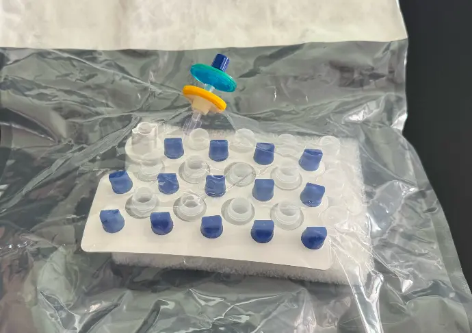 PALA YourTears 14 features a closed-system header bag and integral 0.22-micron sterilzing-grade filter with a proprietary holding tray and fourteen 5 mL eye drop bottles. The PALA YourTears 14 provides up to 70 mL of serum tears. This kit enables clinicians to prepare serum tears without a clean room or laminar flow hood.