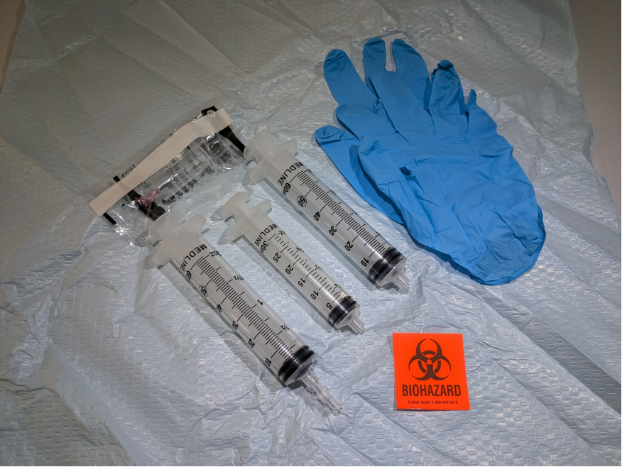 The kit does not include blood draw components or normal saline.